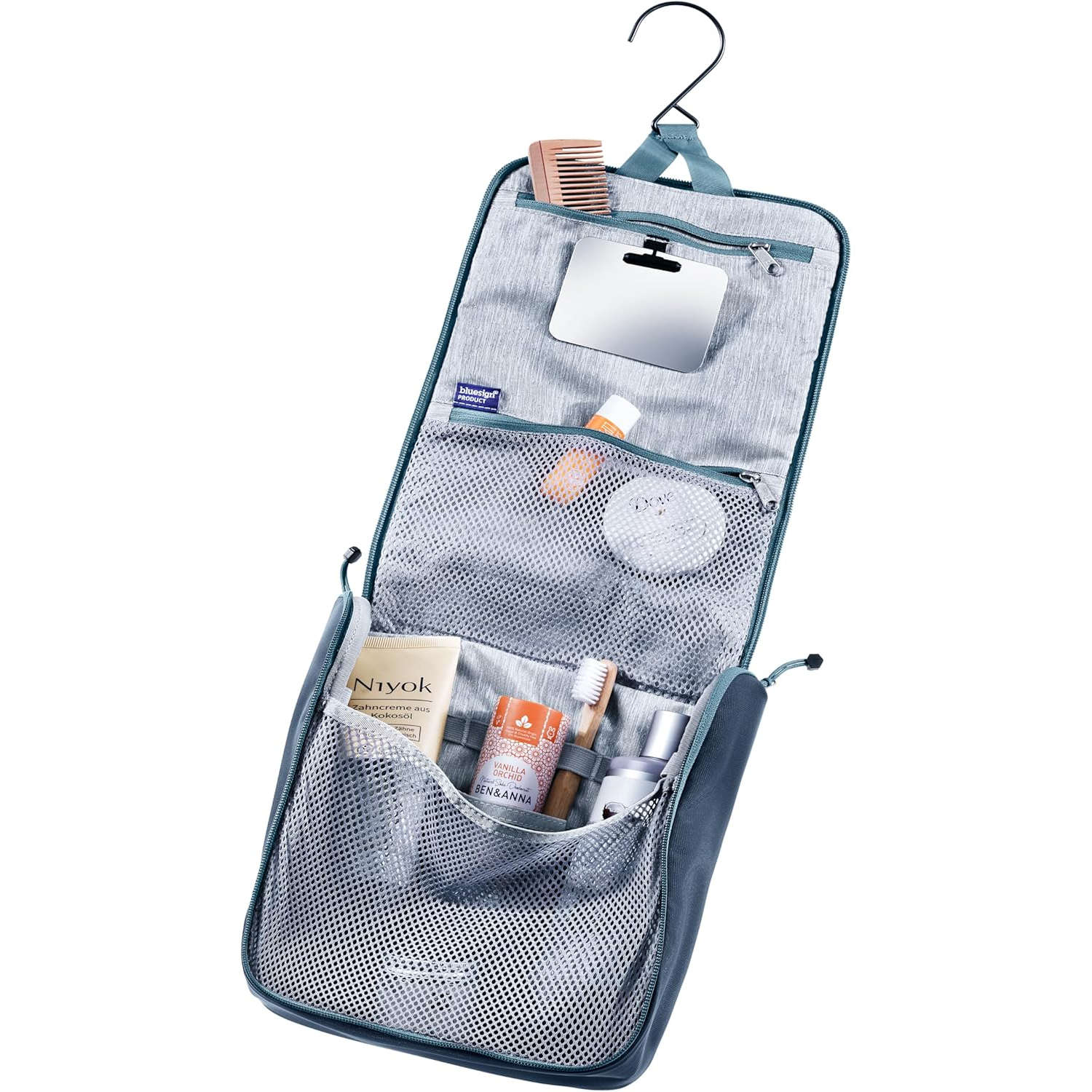 Der Wash Center II von Deuter ist ein Kulturbeutel für Urlauber, die gerne gut organisiert reisen und sich einen tollen Überblick über ihre Hygieneartikel wünschen. Die verwendeten Materialien sind PFC-frei. Um die wasser- und schmutzabweisenden Eigenschaften sicherzustellen, verwendet deuter eine gesundheitlich unbedenkliche und umweltverträgliche DWR (Durable Water Repellency) Beschichtung, die vollständig auf PFC verzichtet. Diese spezielle Oberflächenbehandlung bewirkt, dass Wasser auf der Außenseite der Textilien abperlt. So bleibt das Material trocken und die Natur sauber.